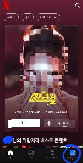 1. 넷플릭스 앱 화면의 오른쪽 하단의 [나의 넷플릭스 ] 누름