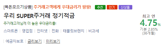 ■ 이 외의 우리은행 목돈 모으기 예 · 적금 상품[ 더 보기↗]
