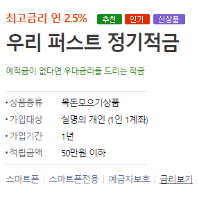 [ 우리 퍼스트 정기적금 더 알아보기↗]